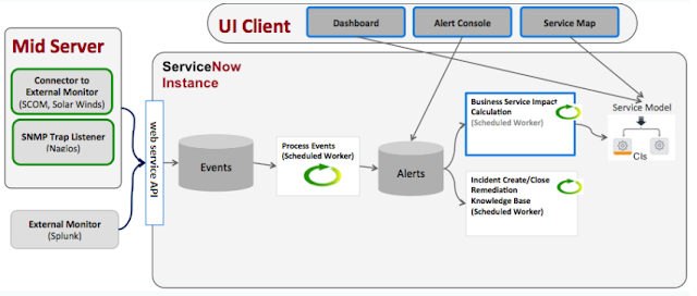 - MID Server:If you don't already have one, collaborate with your core ServiceNow team to initiate the setup of a new MID Server dedicated to Event Management. This MID Server is instrumental in fetching events from monitoring sources through out-of-the-box connectors. Furthermore, you can configure the MID Server to function as an SNMP trap listener or REST endpoint.